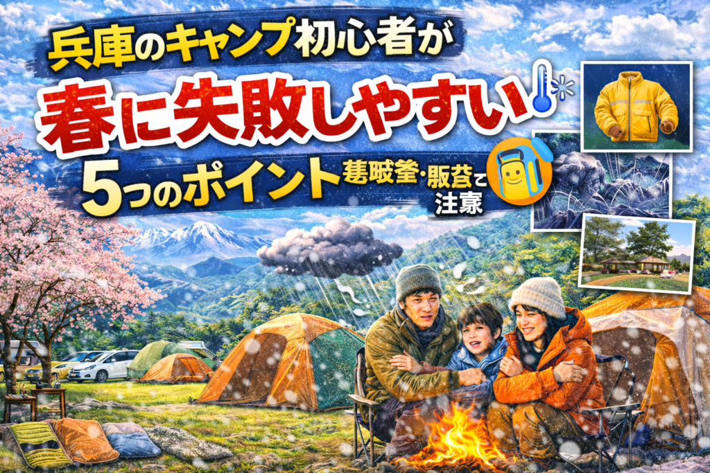 導入文 春は「キャンプを始めるのにちょうどいい季節」と思われがちですが、実は 初心者の失敗が一番多い季節 でもあります。 特に兵庫県は、 六甲山の標高 日本海側と瀬戸内側の気候差 朝晩の冷え込み といった要素が重なり、「春だから大丈夫」と油断す...